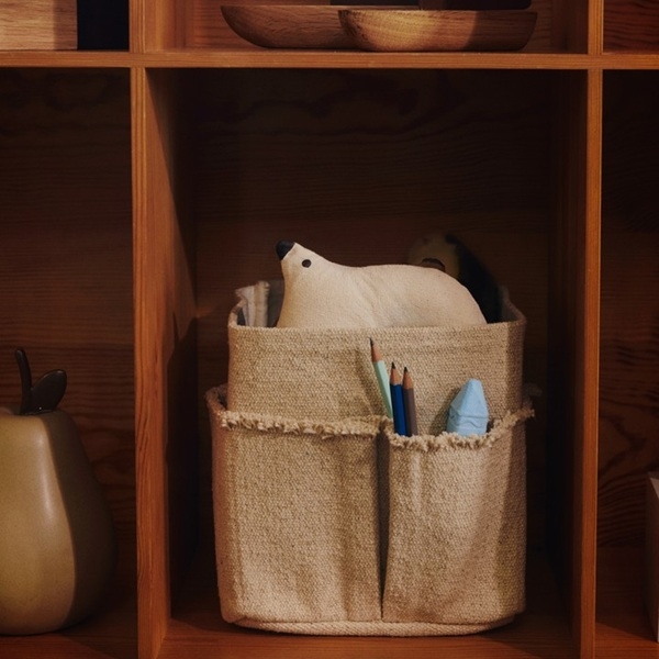Med lommer hele vejen rundt, tilbyder Hokan kurven praktisk opbevaring for alt fra børneværelsets små legetøj til kontorets skriveartikler. Dens bløde struktur gør den ideel til at gemme alt fra håndklæder i badeværelset til strikketøj ved siden af sofaen.