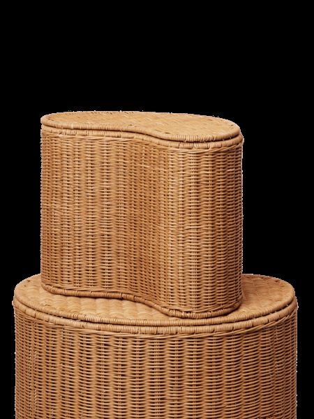 Opdag det charmerende og funktionelle 'Opbevaringsbord Willora i flet - Sæt med 2 fra Ferm Living', der er designet til at tilføre varme og karakter til ethvert børneværelse eller legeområde. Dette unikke sæt består af to håndflettede opbevaringsbokse fremstillet af naturligt rattan med en solid jernforstærket indre struktur, der sikrer holdbarhed og stabilitet.