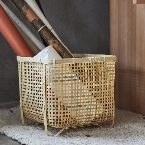 Designet er enkelt og tidløst, hvilket gør kurvene velegnede til både moderne og nordiske hjem, samt rustikke eller boheme-inspirerede indretninger. Deres lette vægt gør det nemt at flytte dem rundt efter behov, og den naturlige farvetone harmonerer smukt med andre naturmaterialer som træ, hør og keramik.