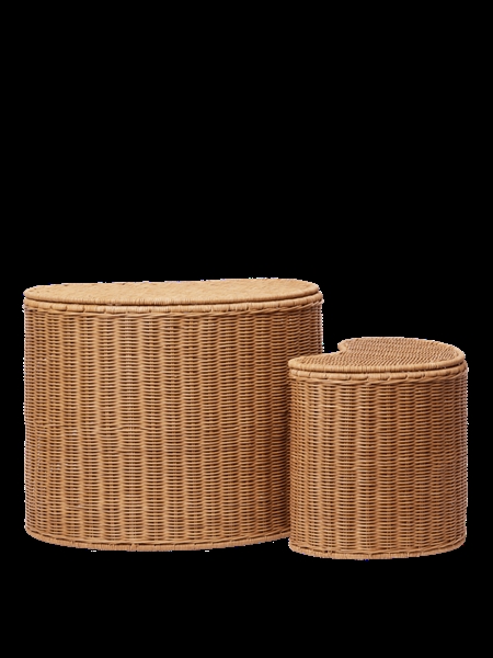 Hver boks i dette sæt har en organisk form, der ikke blot er æstetisk tiltalende, men også utroligt praktisk. Den mindre boks passer perfekt ind i den større, hvilket gør det nemt at spare plads, når de ikke er i brug. Med dimensioner på stor boks: Højde 51,5 cm, Bredde 36 cm, Dybde 41 cm og lille boks: Højde 40 cm, Bredde 26 cm, Dybde 31 cm, tilbyder disse bokse rigelig opbevaringsplads uden at gå på kompromis med stil.Ideel til opbevaring af legetøj, bøger eller hobbyartikler, disse opbevaringsborde er også fantastiske som dekorative sideborde, der kan tilføje et naturligt element til både legeværelset og soveværelset. Farven 'Natural' understreger rattanens skønhed og sikrer, at det passer ind i enhver indretning.