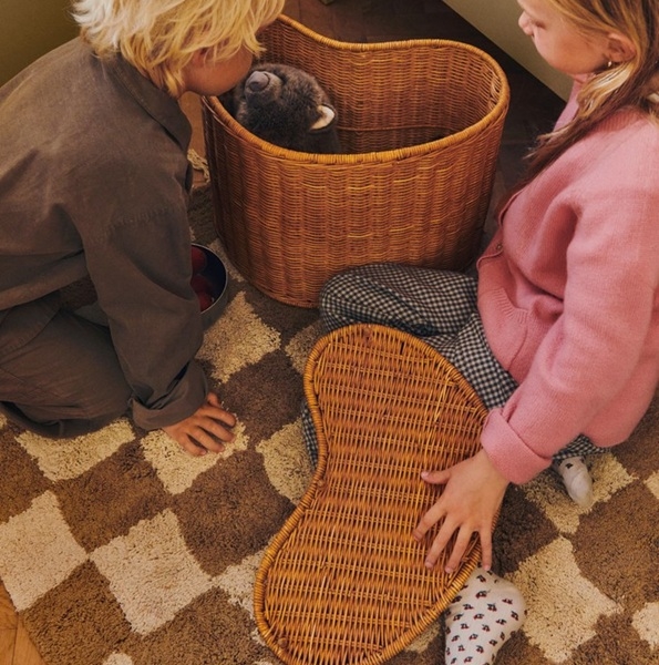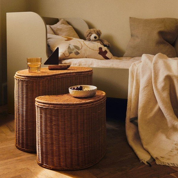 Opdag det charmerende og funktionelle 'Opbevaringsbord Willora i flet - Sæt med 2 fra Ferm Living', der er designet til at tilføre varme og karakter til ethvert børneværelse eller legeområde. Dette unikke sæt består af to håndflettede opbevaringsbokse fremstillet af naturligt rattan med en solid jernforstærket indre struktur, der sikrer holdbarhed og stabilitet.